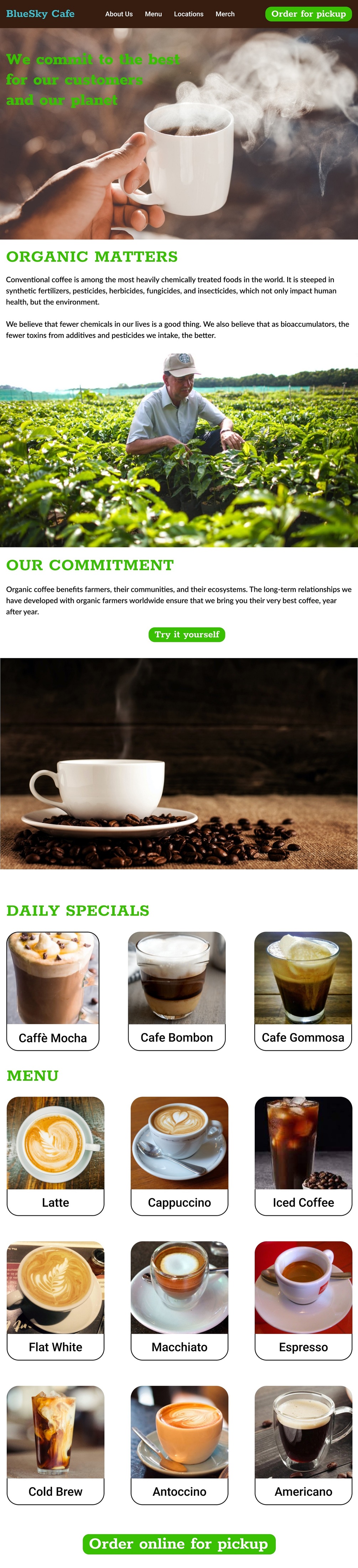 Built for a local cafe, sourcing non-gmo, organic coffee beans for it's products, this design focuses on the quality of it's product, first and foremost.